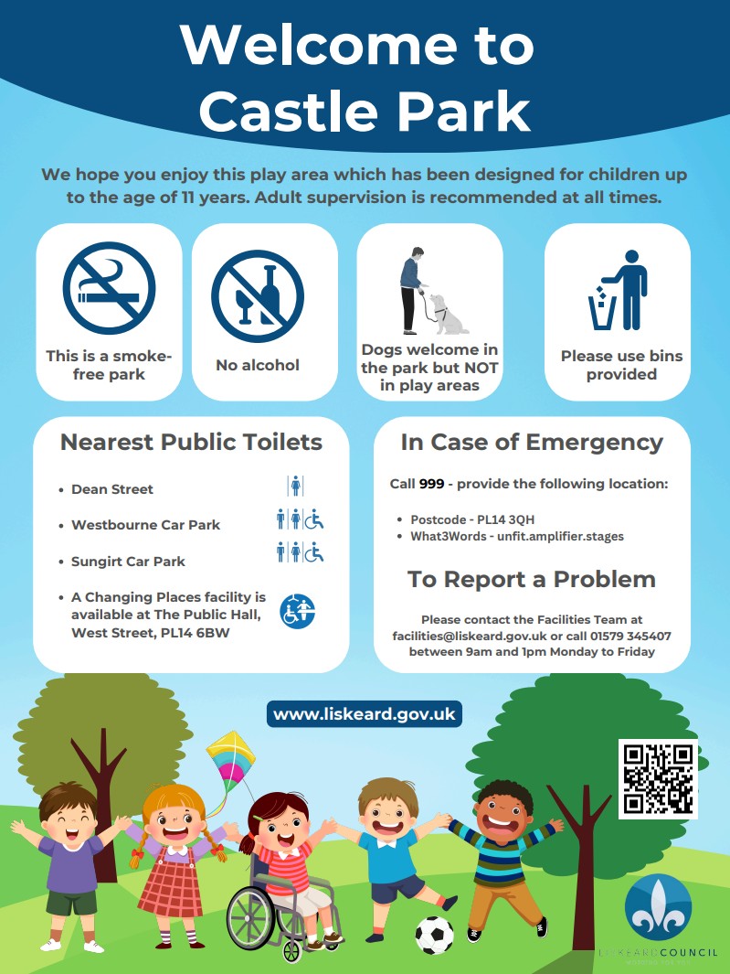 To report an issue at Castle Park please contact facilities@liskeard.gov.uk.