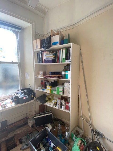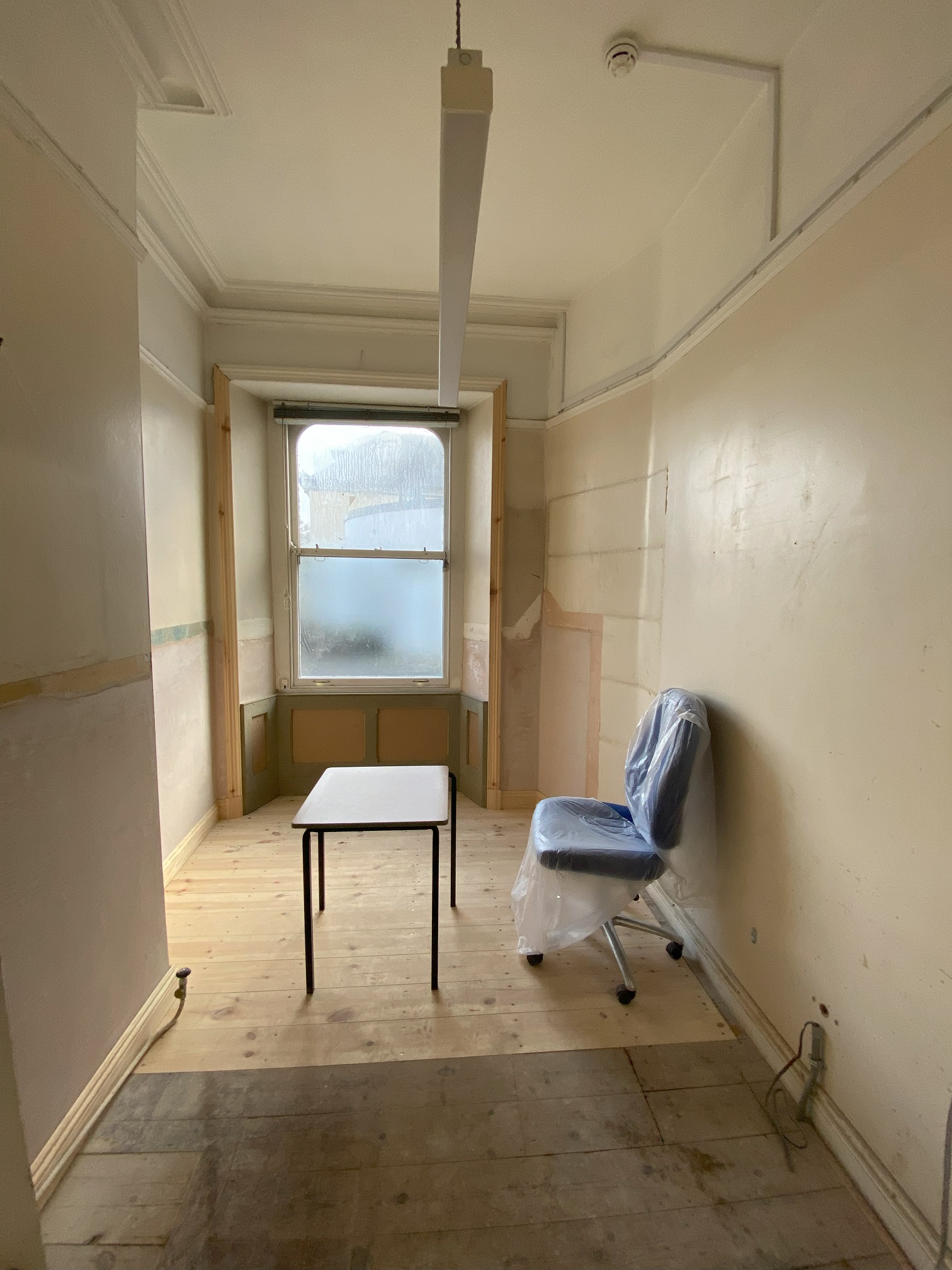 Q1: is the lobby area outside the rear fire exit door (northeast of main works) to be skimmed & decorated where paint is flaking and stained?